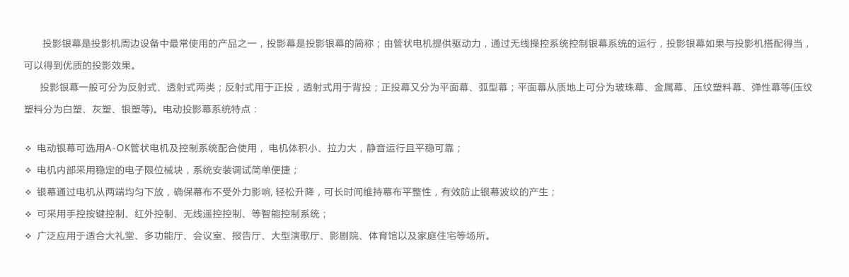 投影银幕是投影机周边设备中最常使用的产品之一,投影幕是投影银幕的简称.