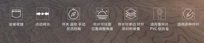 开关,遥控,手动,三种方式灵活控制开合角度,在家中的任意角落都能实现对光线的绝对控制;