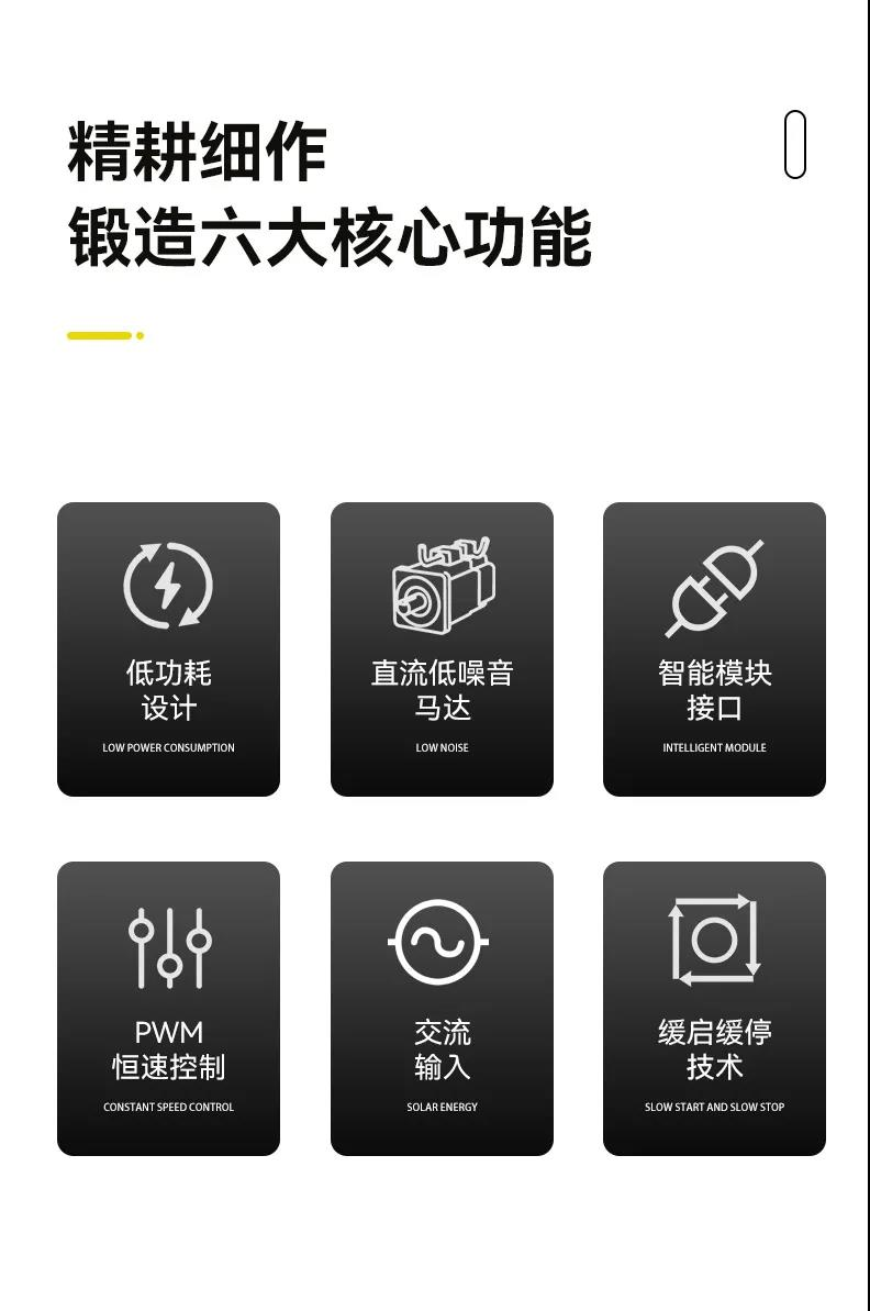 低功耗设计 | 直流低噪音马达 | 智能模块接口