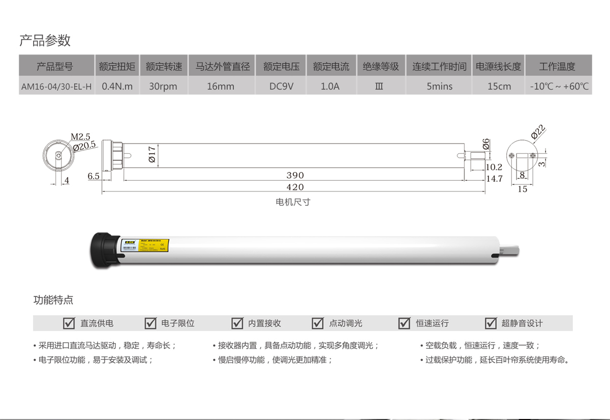 AM16电子限位直流管状电机