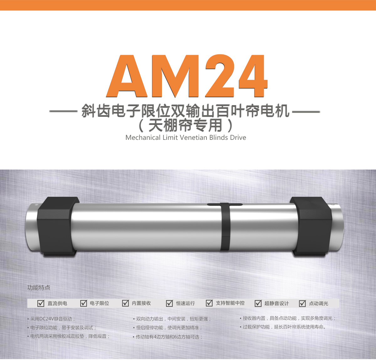 AM24斜齿电子限位双输出百叶帘电机(天棚帘专用)