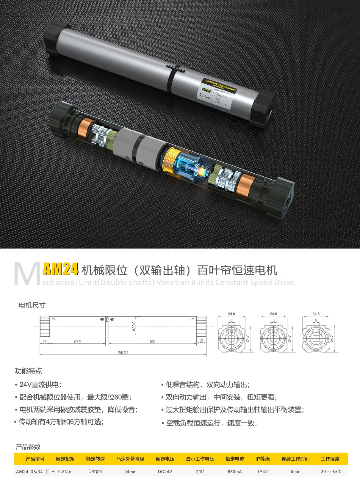 AM24 机械限位(双输出轴)百叶帘恒速电机